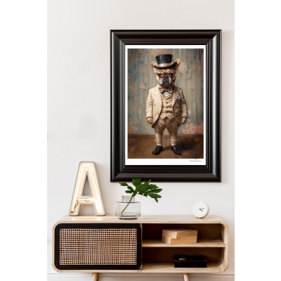 Déjate cautivar por la elegancia atemporal de nuestra nueva colección "Regal Dog #1". Esta lámina combina humor, estilo y sofisticación, ideal para dar un toque único y distinguido a cualquier espacio. Una obra que celebra la nobleza canina con un guiño vintage encantador.