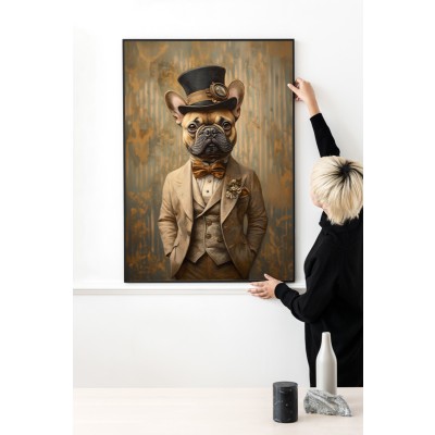 Déjate cautivar por la elegancia atemporal de nuestra nueva colección "Regal Dog #1". Esta lámina combina humor, estilo y sofisticación, ideal para dar un toque único y distinguido a cualquier espacio. Una obra que celebra la nobleza canina con un guiño vintage encantador.