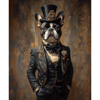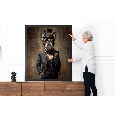Déjate cautivar por la elegancia atemporal de nuestra nueva colección "Regal Dog #1". Esta lámina combina humor, estilo y sofisticación, ideal para dar un toque único y distinguido a cualquier espacio. Una obra que celebra la nobleza canina con un guiño vintage encantador.