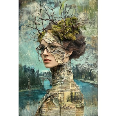 Una obra que fusiona naturaleza, historia y alma en un retrato onírico y poético. La serie “Mystic #01” nos transporta a un universo donde el rostro humano se entrelaza con paisajes montañosos, arquitectura antigua y texturas orgánicas como musgo y papel. Ideal para espacios que buscan arte con profundidad, sensibilidad y un toque de magia.
